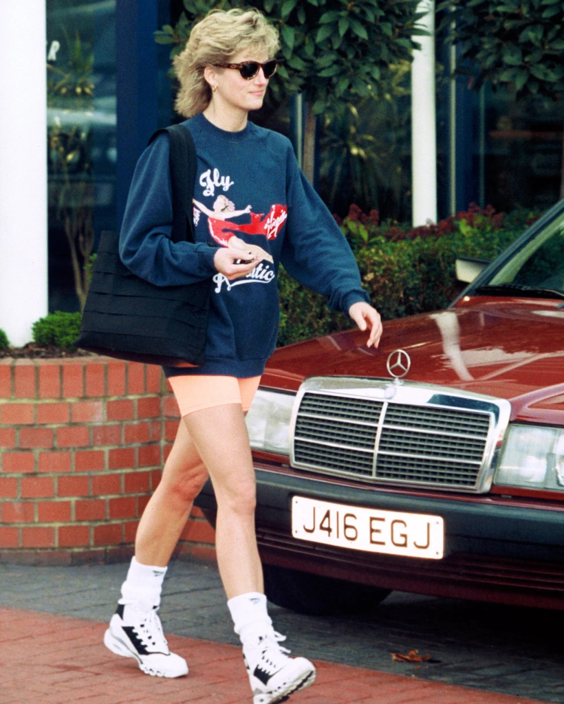 Sudaderas oversized, shorts biker, calcetas altas y tenis clásicos componen una imagen que remite directamente al estilo casual pero sofisticado que Lady Di convirtió en símbolo de libertad, comodidad y elegancia fuera de los protocolos reales. Karol G reinterpreta ese legado con su propio sello: femenino, fuerte y contemporáneo.