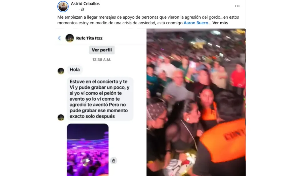 Es importante señalar, agregan, que la asistente “contaba con boletos para la zona Oro y se encontraba en un área distinta a la que le correspondía, lo cual constituye una infracción a las reglas del evento, situación que ella misma reconoce en su transmisión”.